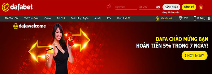 Dafabet chào mừng , hoàn tiền 5% trong 07 ngày tại sảnh Casino