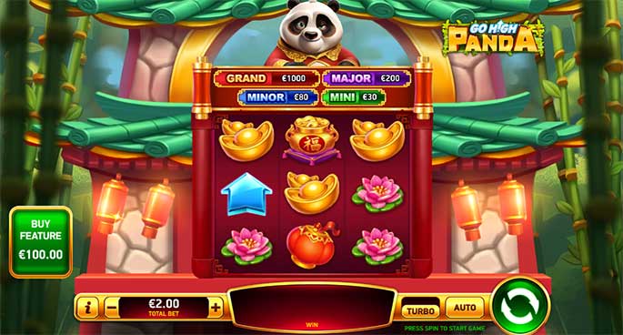 Trò chơi slot “Go High Panda” vừa có sự tinh nghịch đáng yêu của các biểu tượng, vừa mang phong cách Đông Á với màu sắc vàng đỏ quen thuộc.