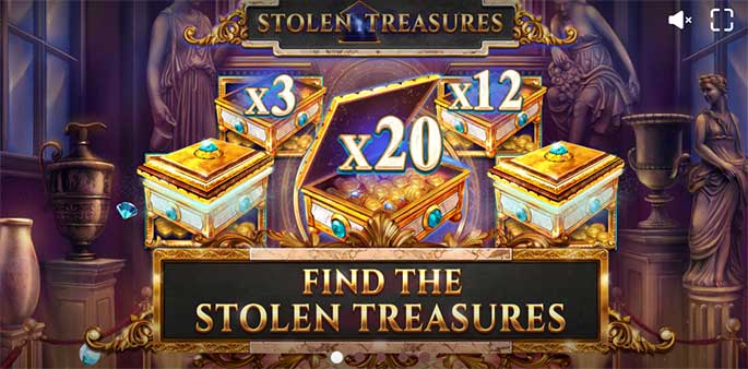 Stolen Treasures lấy bối cảnh kho báu, những vật phẩm quý giá đang bị truy tìm. Giao diện trò chơi đẹp mắt, hình ảnh sắc nét, phong cách hiện đại, người chơi một khi đã đến nhanh chóng bị cuốn nhanh vào guồng quay.